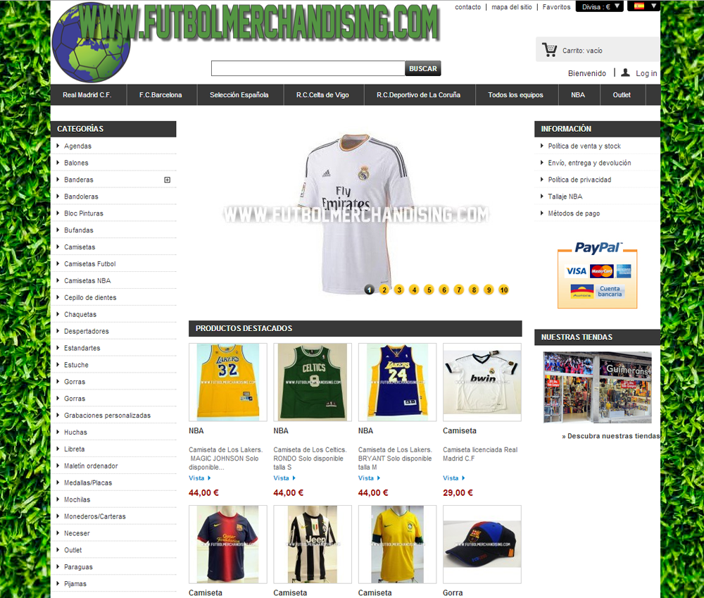 Diseño webTienda on-line de todo tipo de productos de merchandising. Todos los deportes, todos los artículos.